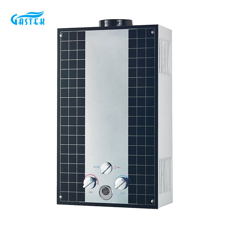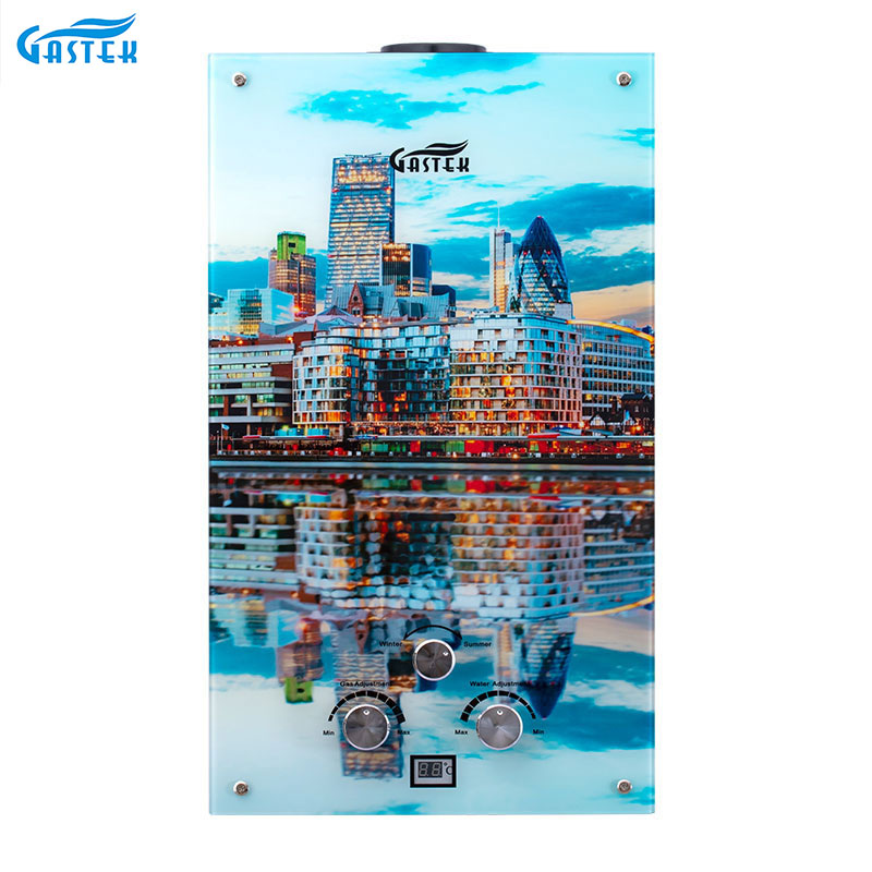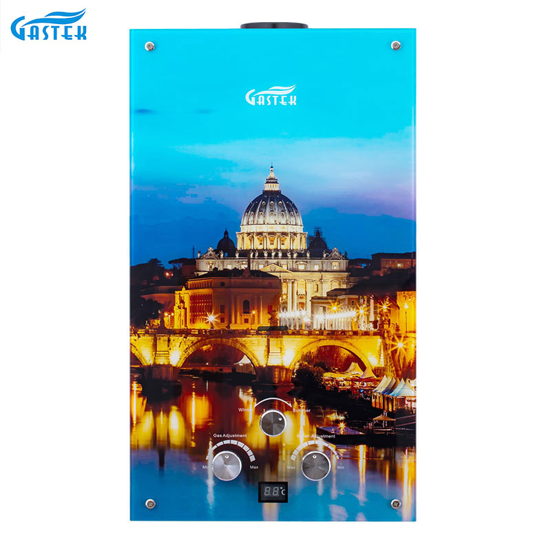 This typical flue-type12L glass panel gas water heater can supply instant, endless, on-demand hot water. It's wall-mounted, of compact size, and easy to install in an open area. Flameout protection, Ignition failure protection, anti-freezing protection, overheating protection, etc. can ensure the family's safety.
